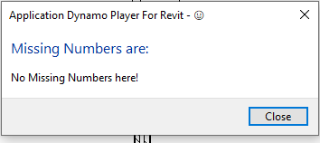 Often, it is required that there are no missing numbers between a sequence of numbers for door / window schedule or sheet numbers. This script is developed with the intention of finding missing numbers from a list of numbers. It is fairly high-level and work for many revit elements including doors / windows and sheets. Via dynamo player: users are required to input the category they need reporting and the parameter is to be input as a 'string'.